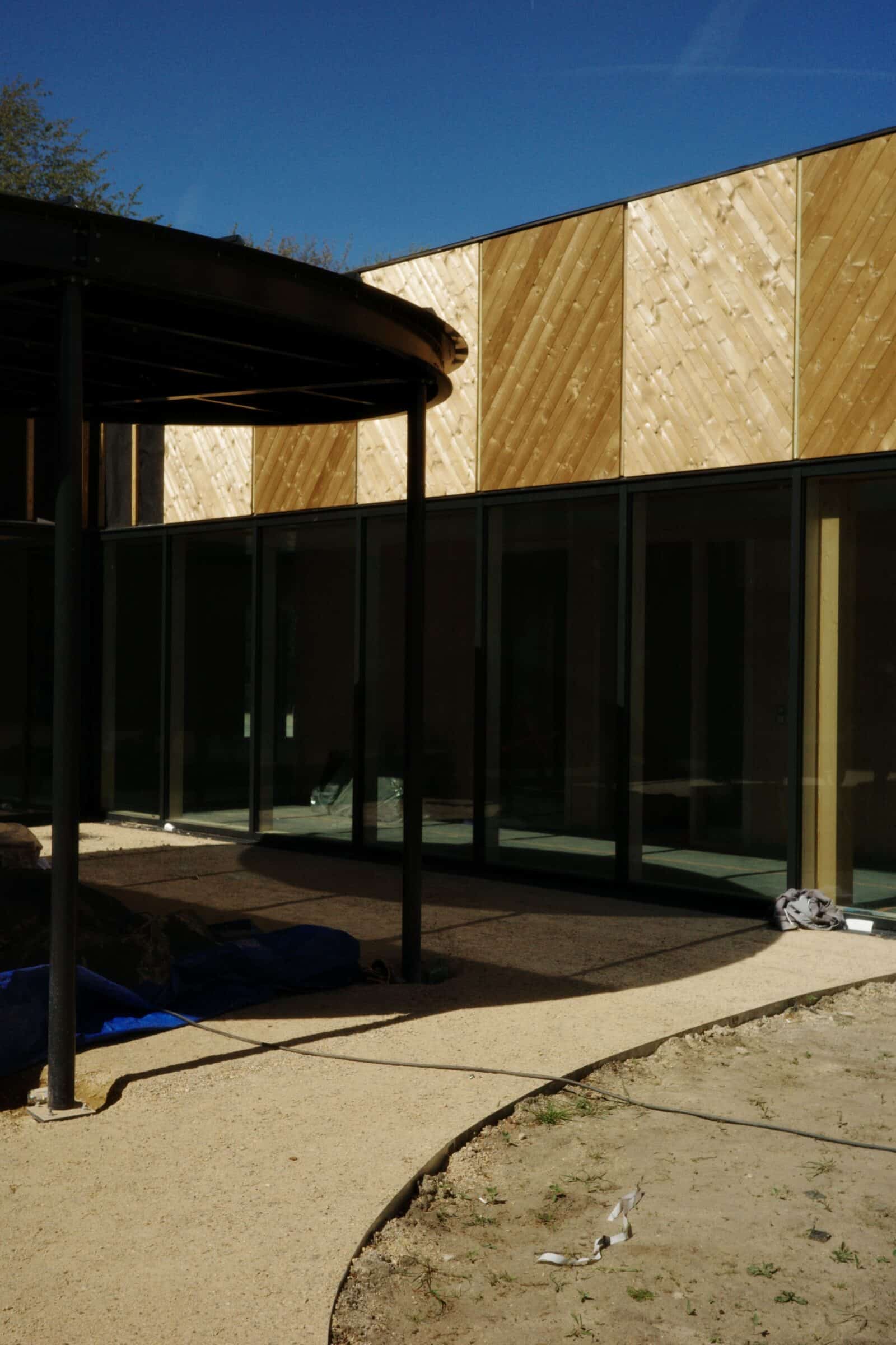 Bardage bois, pavage, semis, enlèvement des protections et nettoyage intérieur : plusieurs corps de métier sont présents sur chantier et profitent des belles conditions météo pour avancer au mieux.