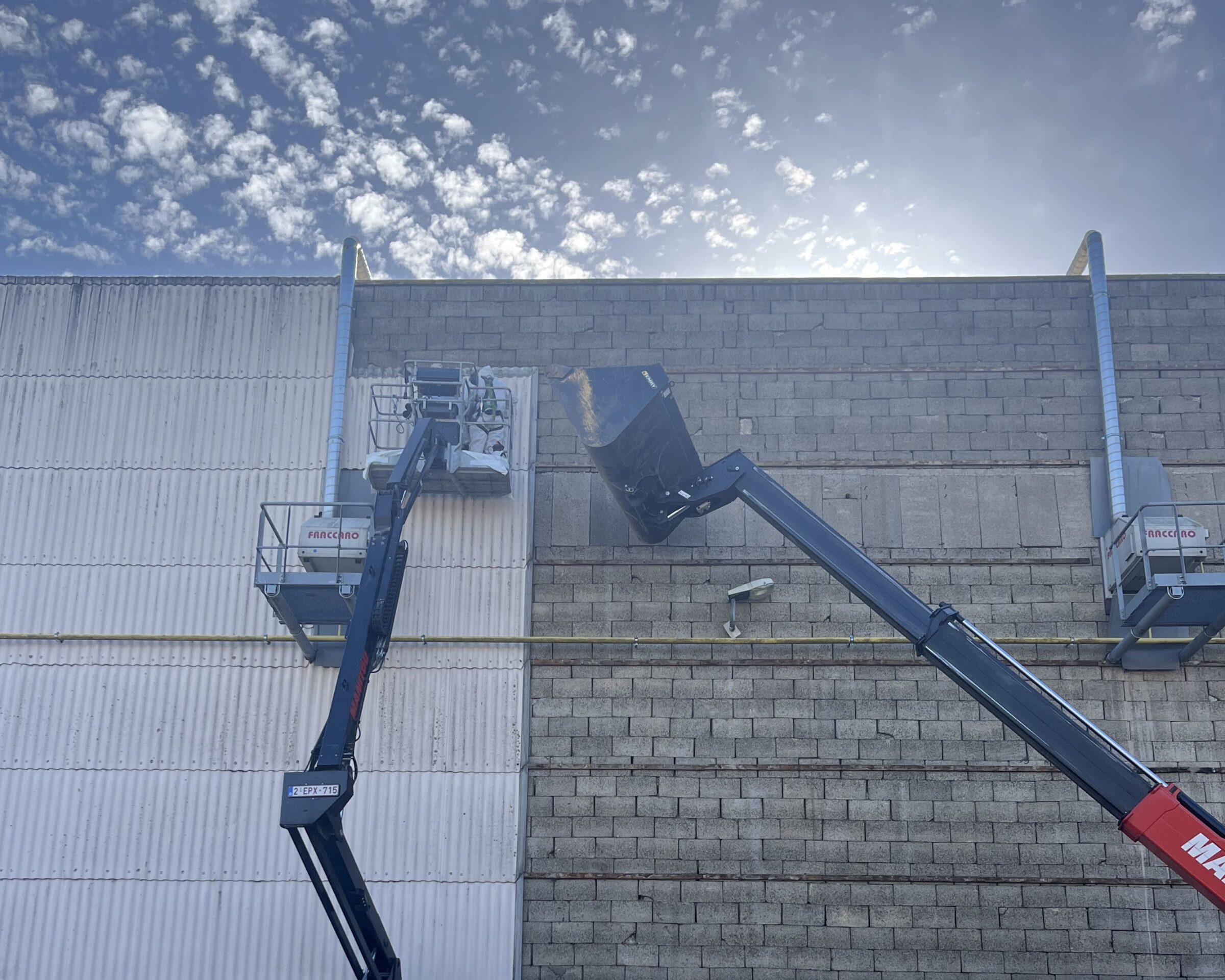 Le chantier de rénovation de NAMUR EXPO franchit une nouvelle étape avec le démarrage des travaux de désamiantage. Les éléments de parement existants, comprenant des tôles ondulées et des plaques Glasal, sont actuellement déposés avec le plus grand soin dans le respect des procédures de sécurité et des exigences environnementales. Cette phase préparatoire essentielle ouvre la voie aux prochaines interventions du projet.